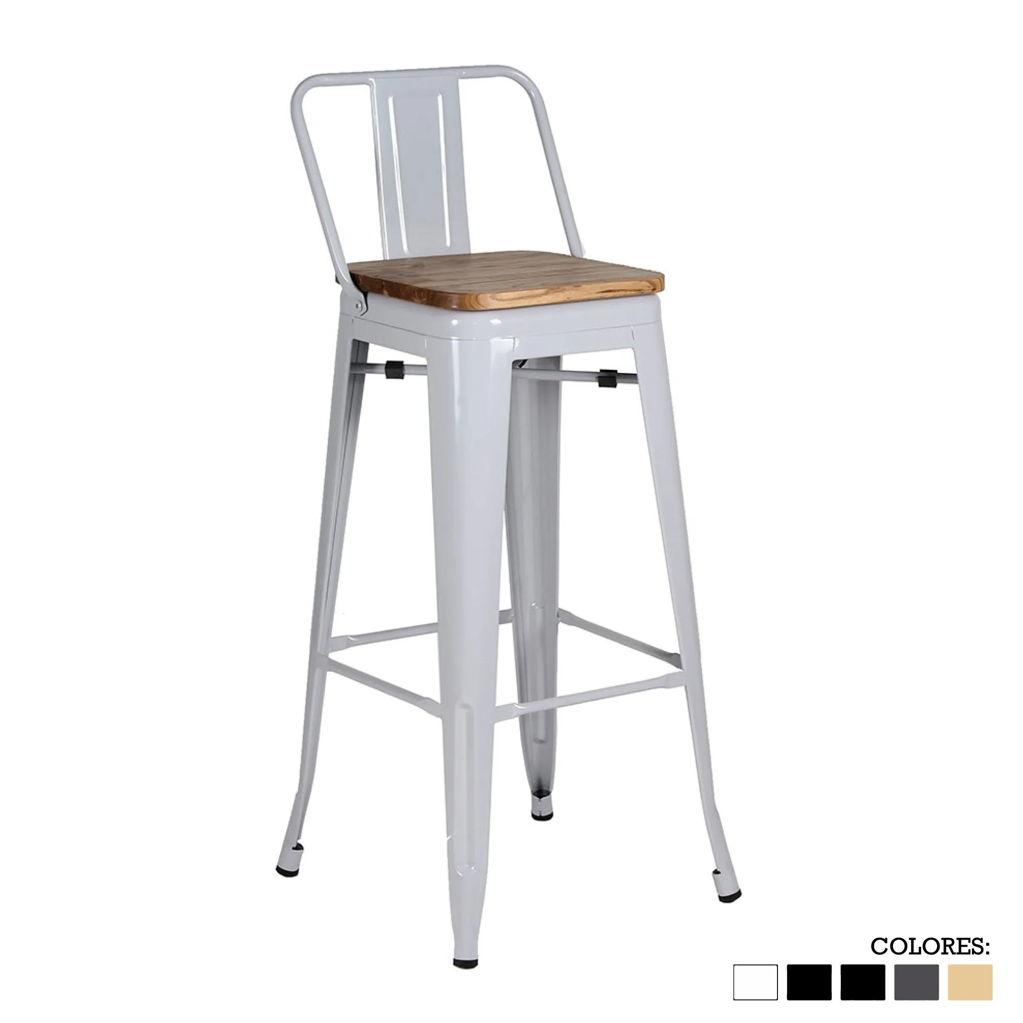 BANCO BOLTON CON RESPALDO BAJO Y ASIENTO DE MADERA
