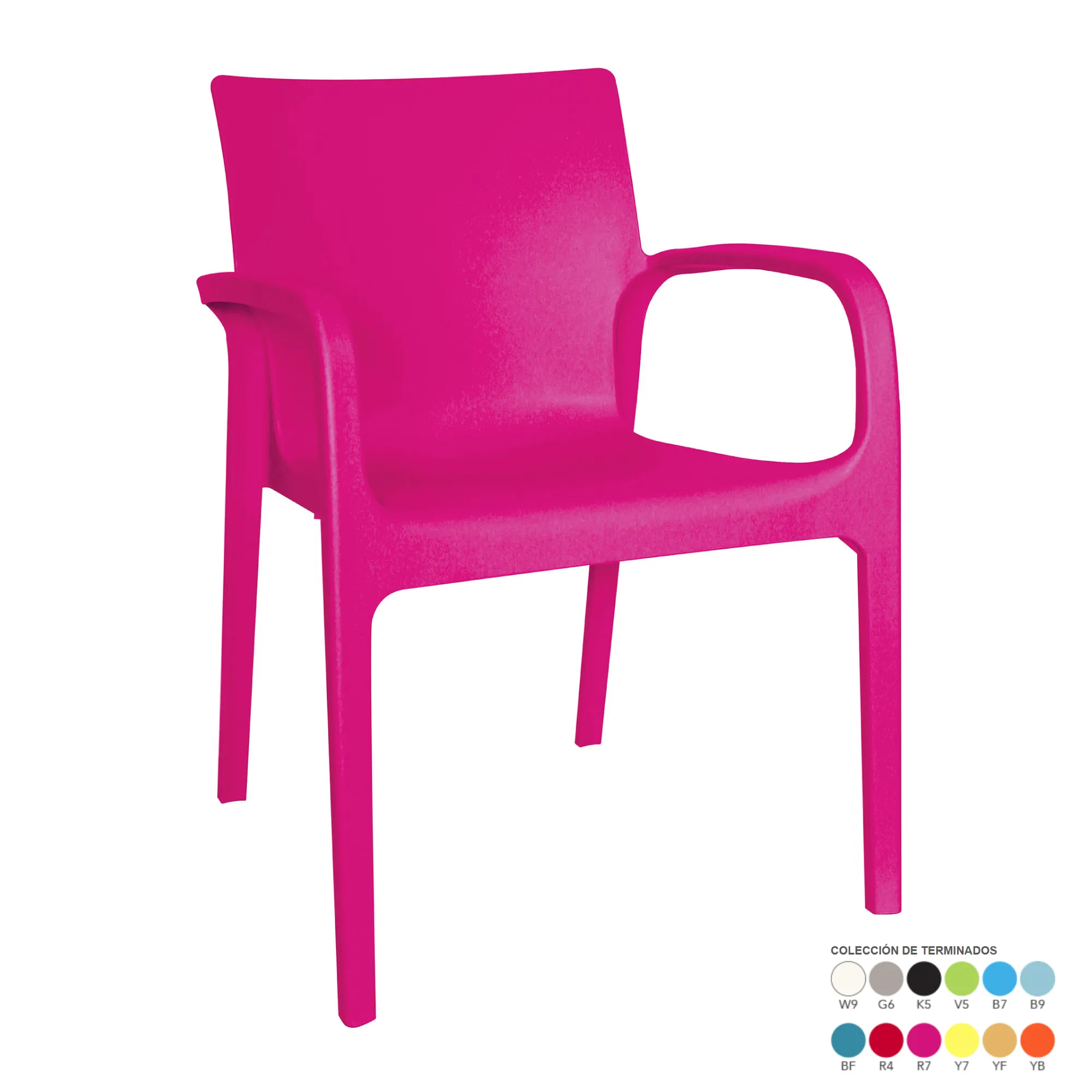 - RESPALDO, ASIENTO Y PATAS: DE UNA SOLA PIEZA EN POLIPROPILENO DE ALTA RESISTENCIA Y DURACIÓN PARA INTEMPERIE, RESISTENTE A LOS RAYOS ULTRAVIOLETA (UV) Y AL AMBIENTE SALINO.