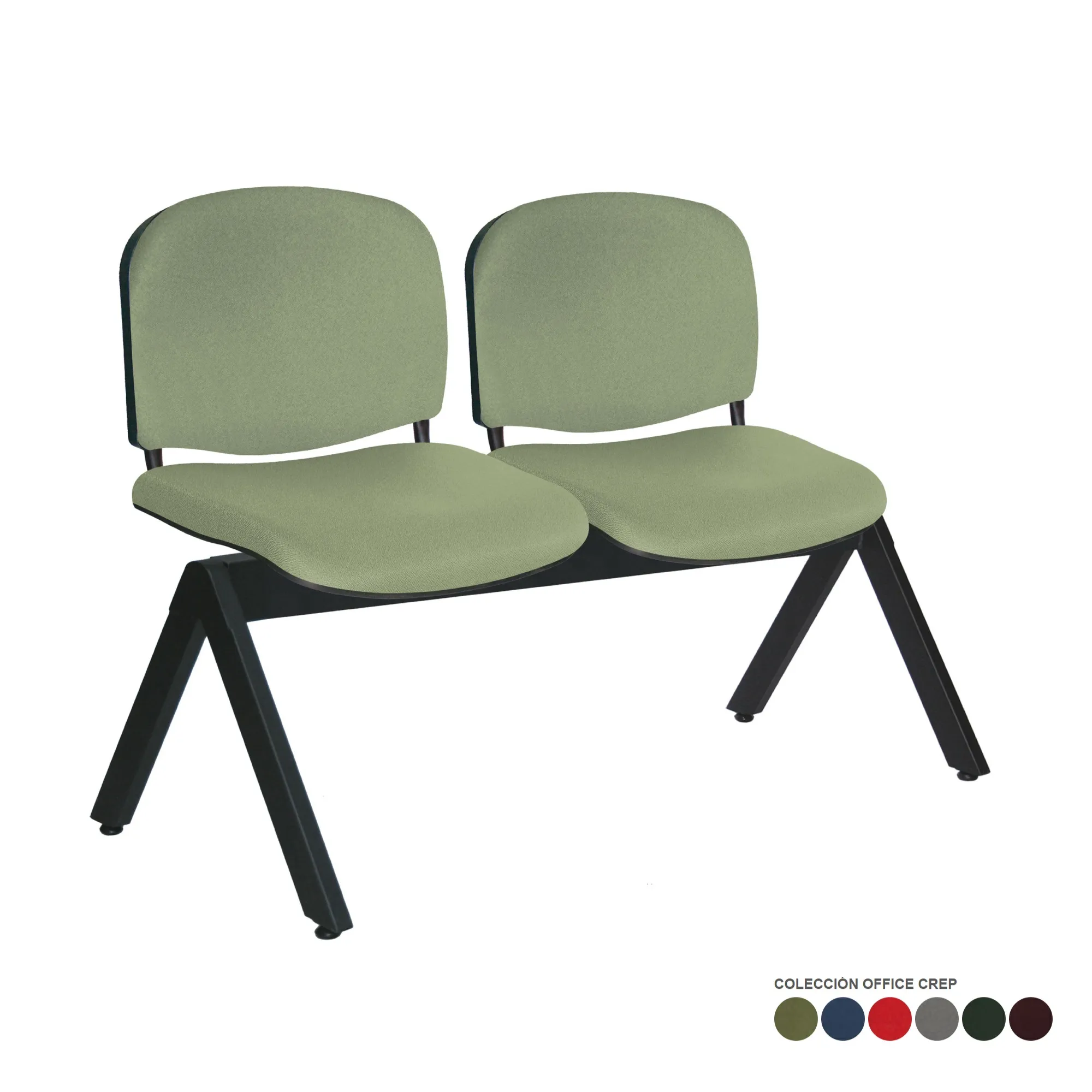 - estructura: de acero tubular rectangular de 1 1/2″ X 3″, calibre 16, asientos y respaldos de perfil redondo tubular de acero ponchado con travesaños separadores tubulares redondos de acero con acabado de pintura epóxica (electrostática) color negro mate.