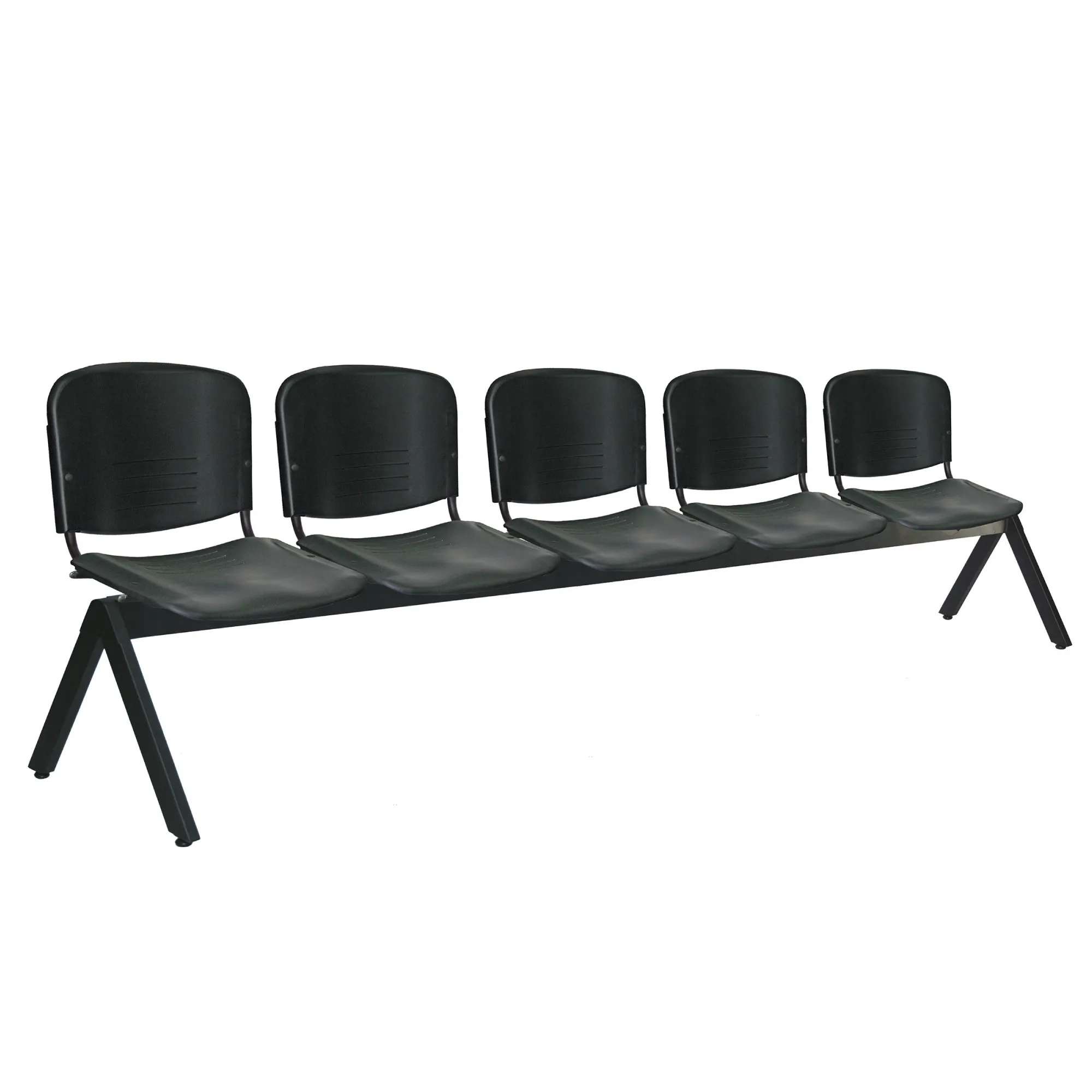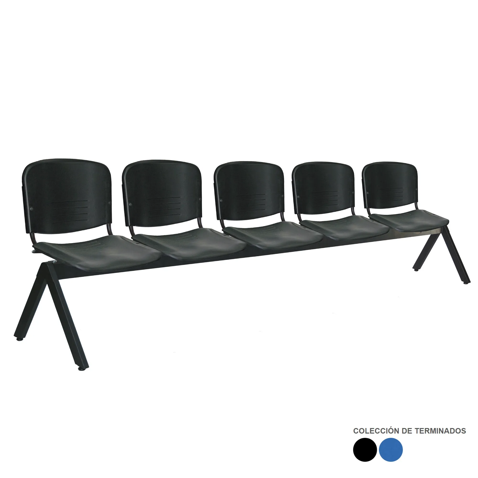 - estructura: de acero tubular rectangular de 1 1/2″ X 3″, calibre 16, asientos y respaldos de perfil redondo tubular de acero con travesaños separadores tubulares redondos de acero con acabado de pintura epóxica (electrostática) color negro mate.